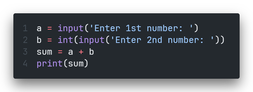y = input("Enter another number: ") # "4"