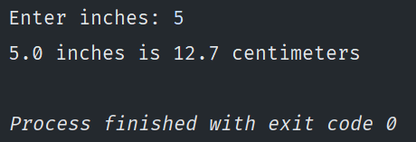 print(f"{inches} inches is {centimeters} centimeters")