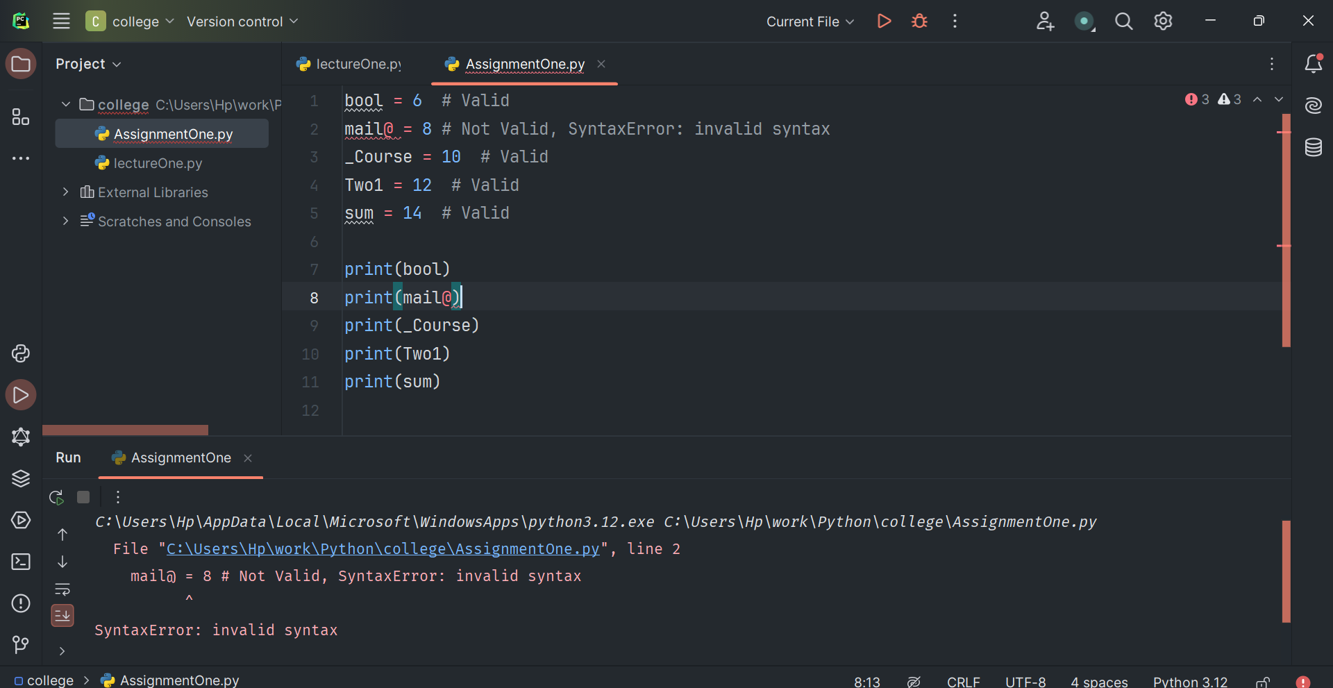 boolmail@_CourseTwo1sumValid identifiers: