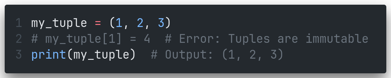 - Definition: Tuples are immutable, ordered collections of items, where the items can be of any data type.