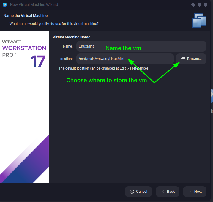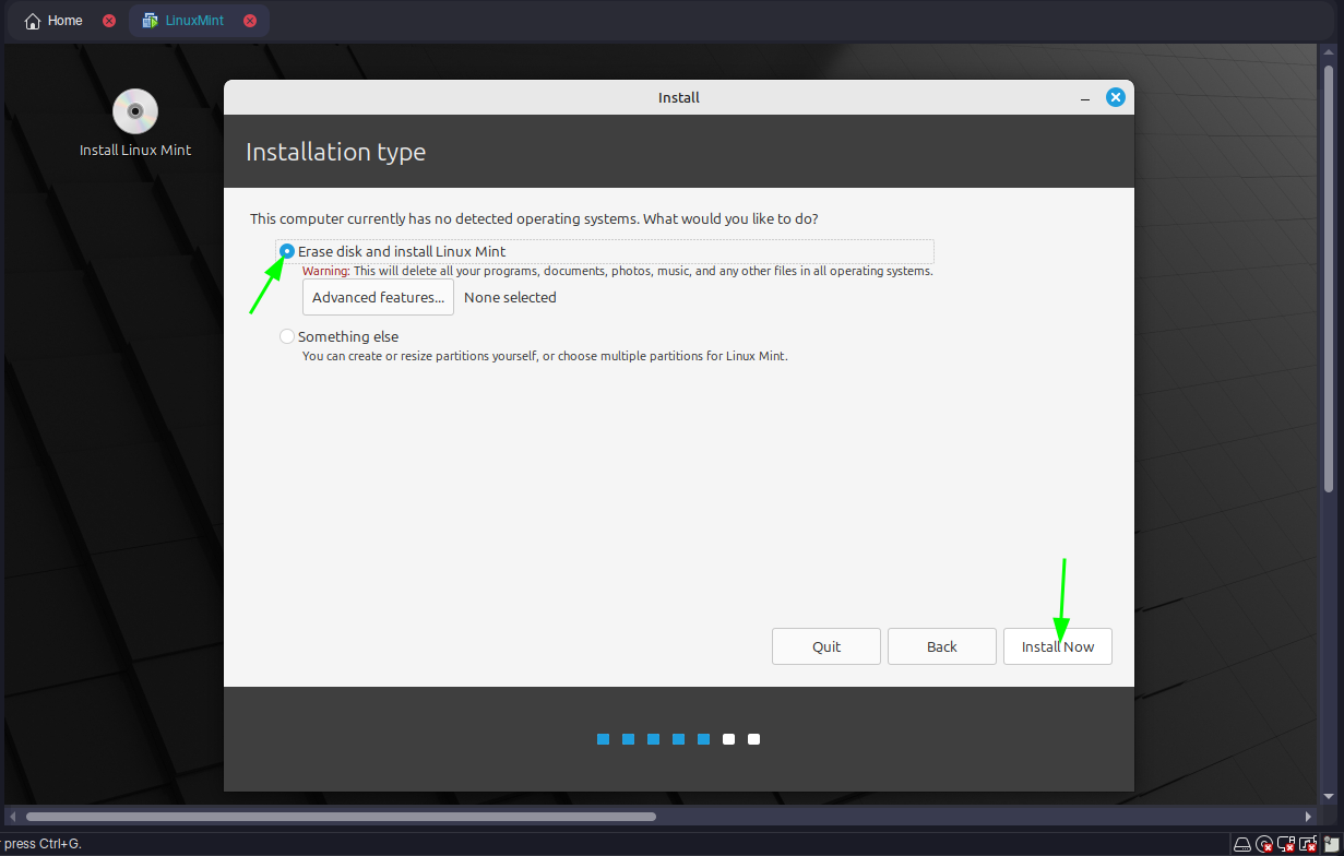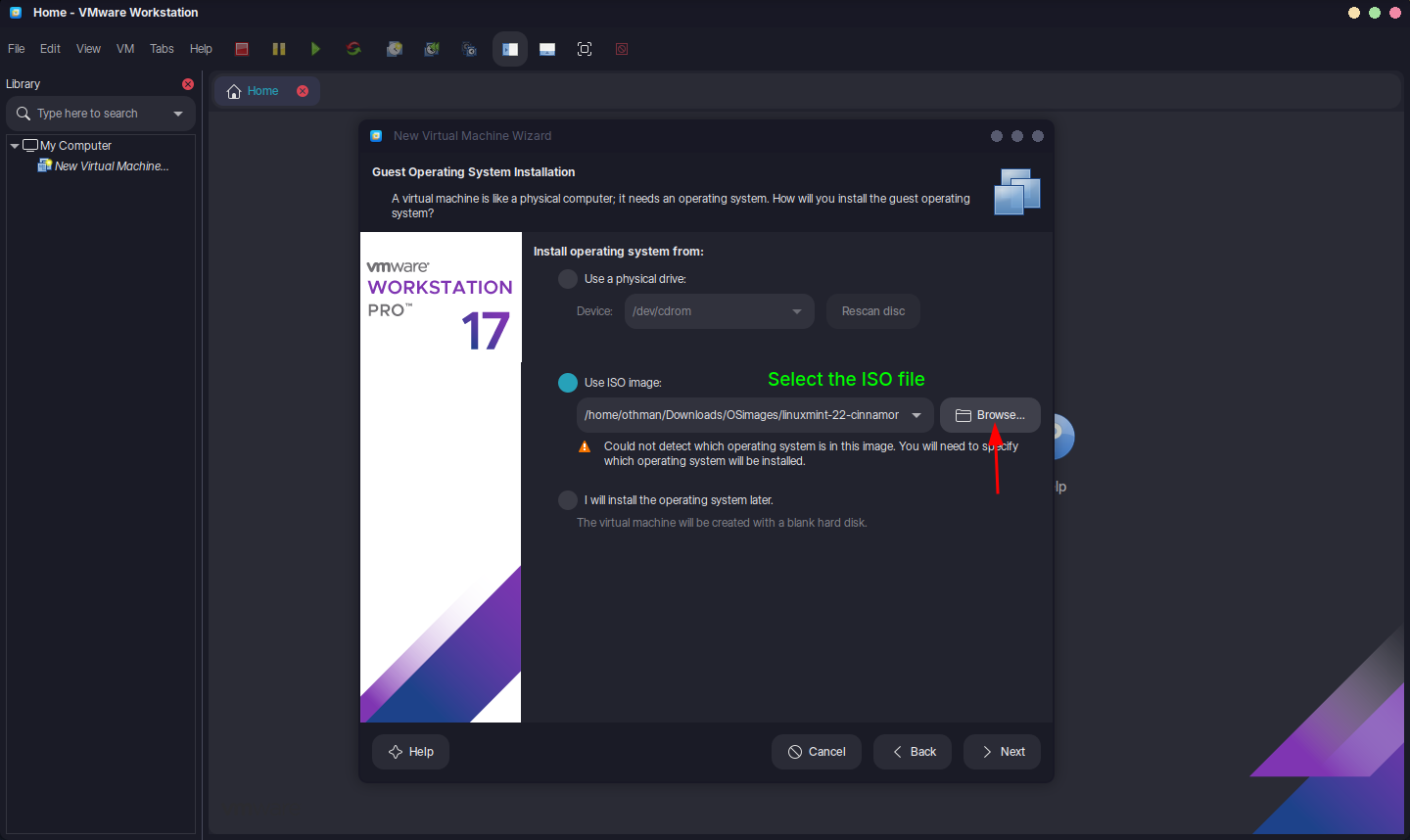 - Insert an ISO file or physical disk for the guest OS (e.g., Linux Mint).