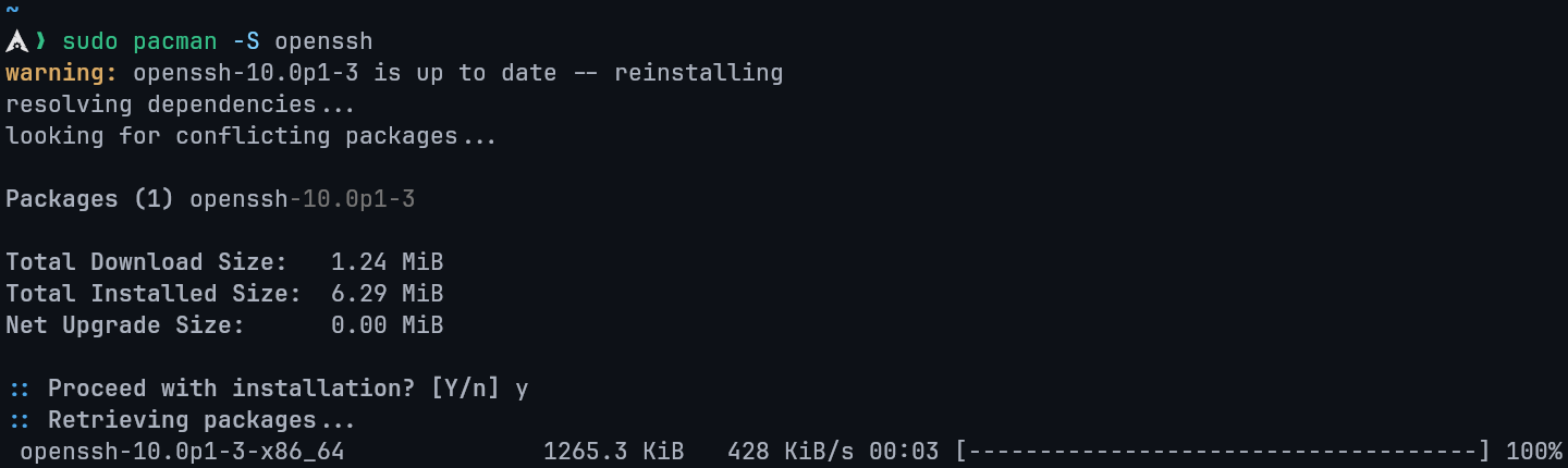 Since I'm using Arch Linux, I'll use my package manager, pacman, to handle the installation.