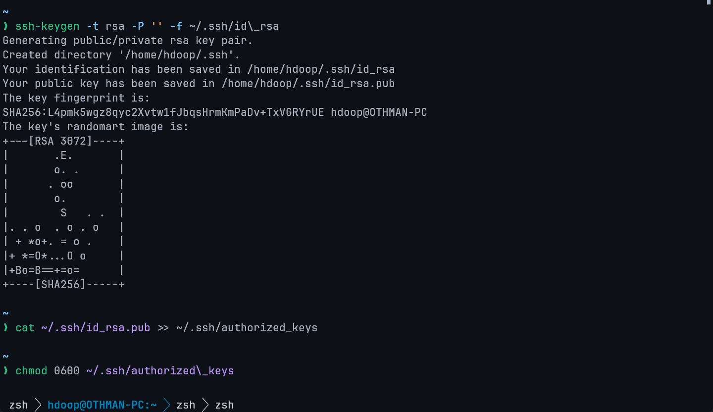 ssh-keygen -t rsa -P '' -f ~/.ssh/id\_rsa