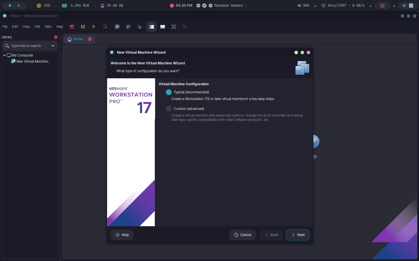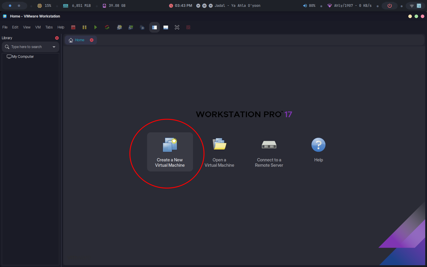 - Click "File" > "New Virtual Machine" or click on the button found on the start page.