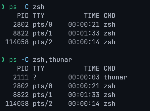 Alternatively, a more detailed output can be obtained with ps aux (can be written as ps -aux)