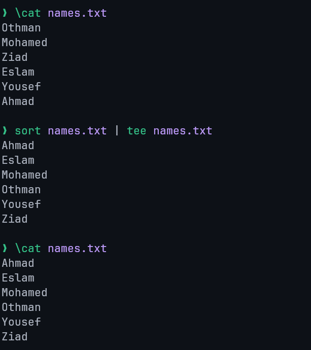 cat < file.txtThe < symbol redirects the content of file.txt to the standard input of the cat command.cat then processes this input and writes it to its standard output (the terminal screen).