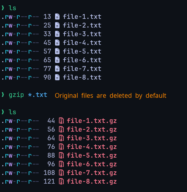 gzipcommand is used to compress files, while thegunzipcommand is used to decompress them. - File Extension: Files compressed with