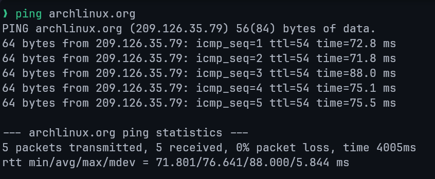 Successful ping example:
