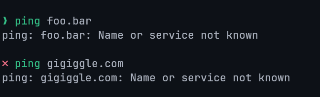 Unsuccessful ping example: