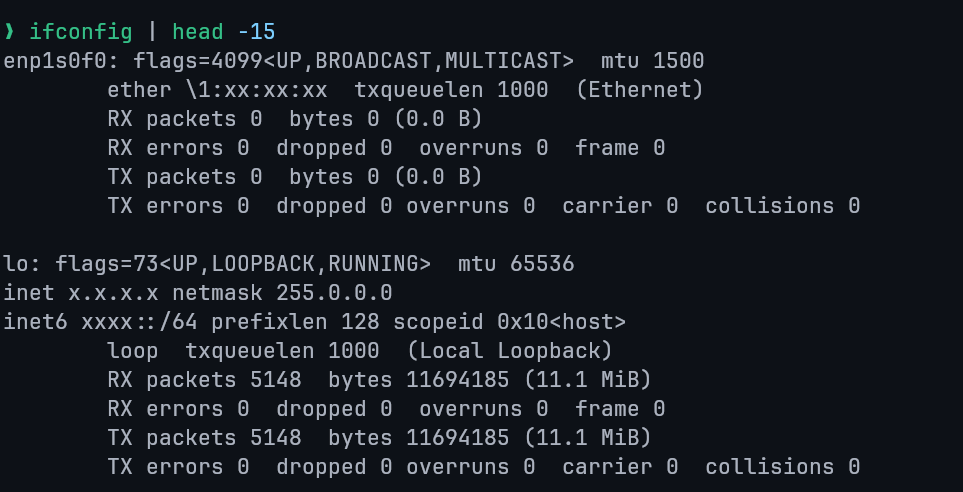 ifconfig eth0 # Ethernet interface