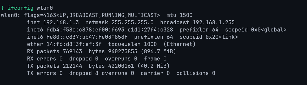 ifconfig wlan0 # Wireless interface