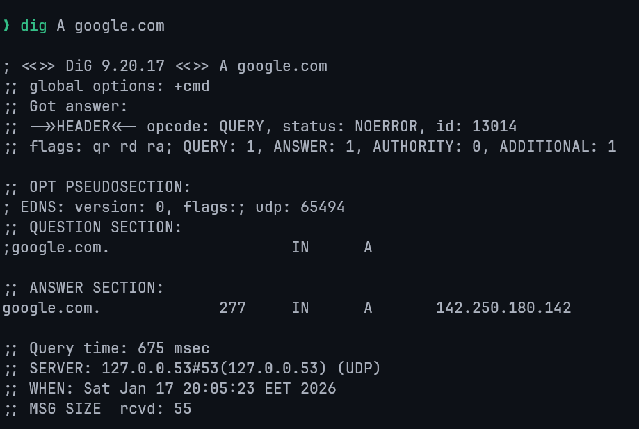 A powerful and flexible DNS query tool commonly used for troubleshooting. It provides detailed DNS response data.