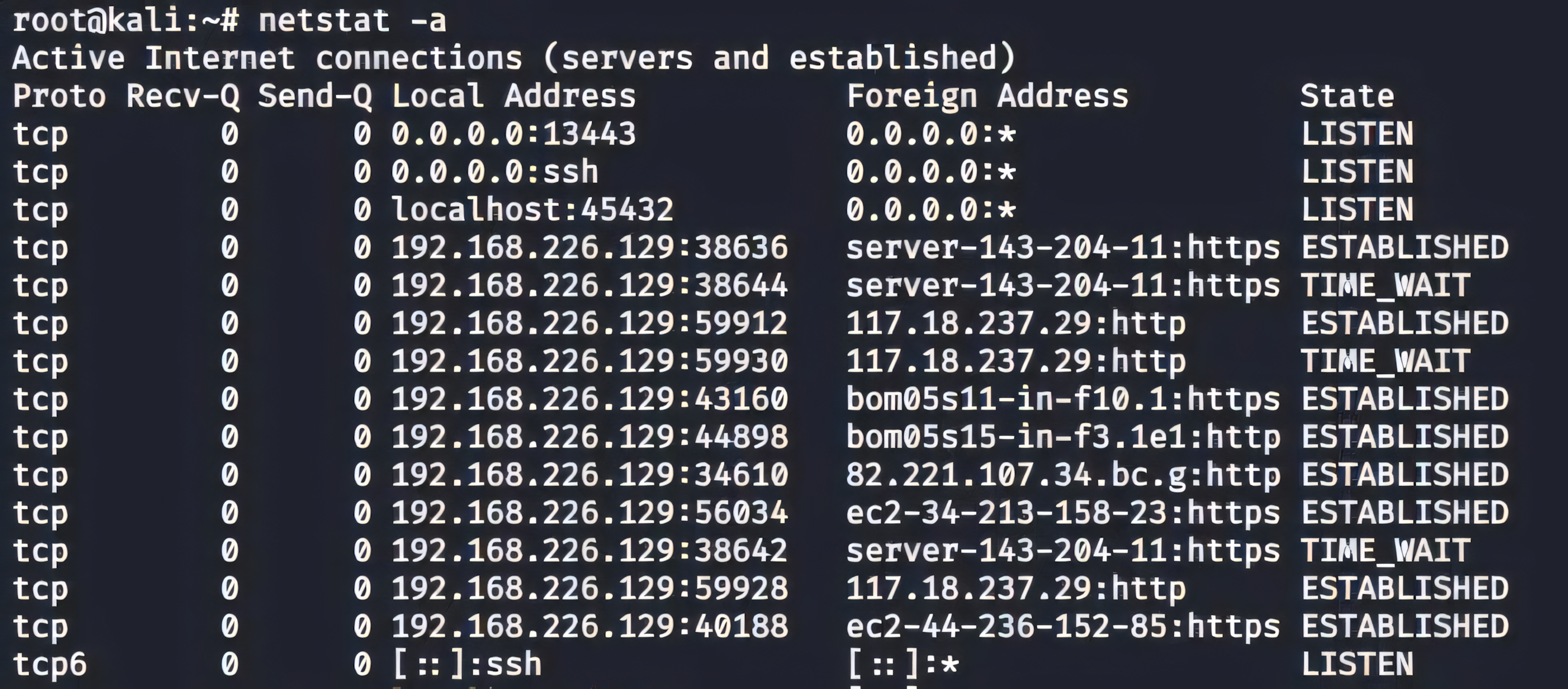 netstat -at # TCP only
