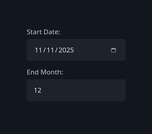 <input type="month" name="billing" value="2025-11" />- Returns values like