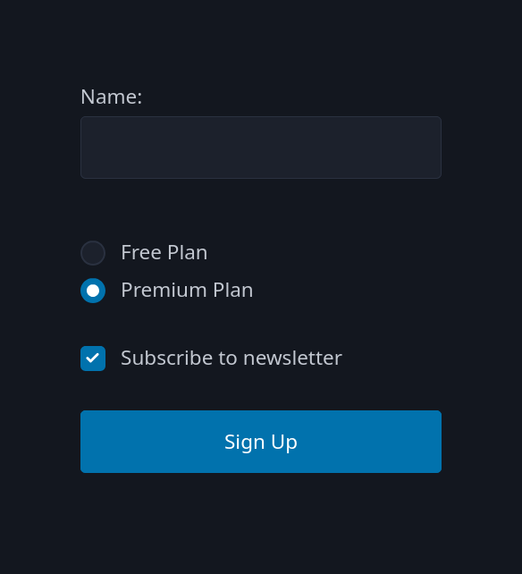 <label><input type="radio" name="plan" /> Premium Plan</label><br />