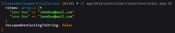 pluck('email', 'name') method output:
